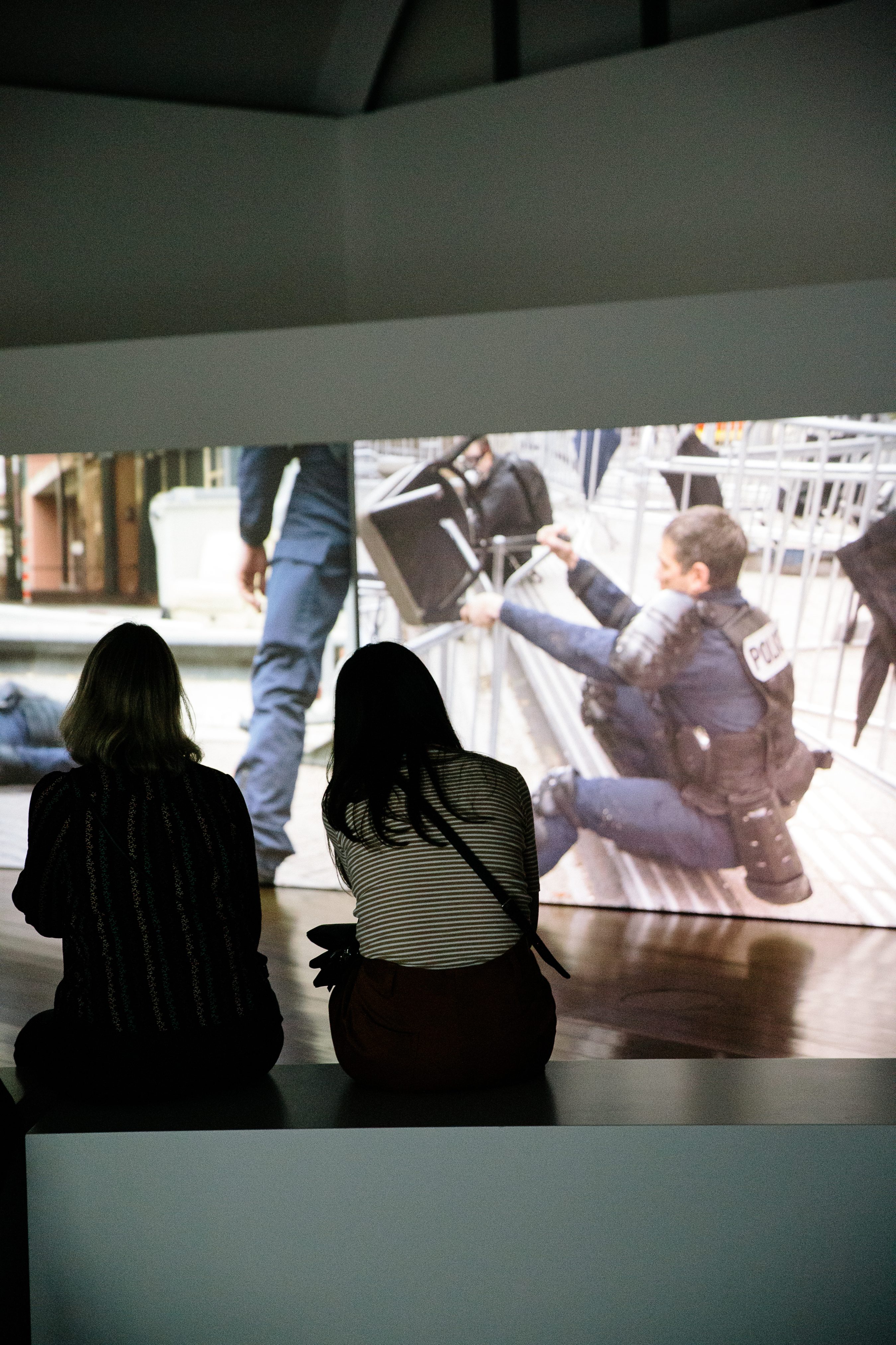 The SCHIRN is presenting Aernout Mik’s video installation "Double Bind" (2018), as well as the work "Threshold Barriers" (2022), which was conceived specially for the exhibition. Both works pursue the notions and dynamics of security and threat, power and powerlessness in public space and enter into dialogue with each other at the SCHIRN. In "Double Bind", the artist addresses the presence of armed units from the national security apparatus. They move around the city in apparent isolation and without direct contact to passersby. "Threshold Barriers", by contrast, shows an incident in which society and state power, citizens and police, engage in direct contact, with the traditional structures of authority and security having lost their validity. Mik’s fictitious scenarios move between documentation and performance, seeming familiar and disconcerting at the same time.