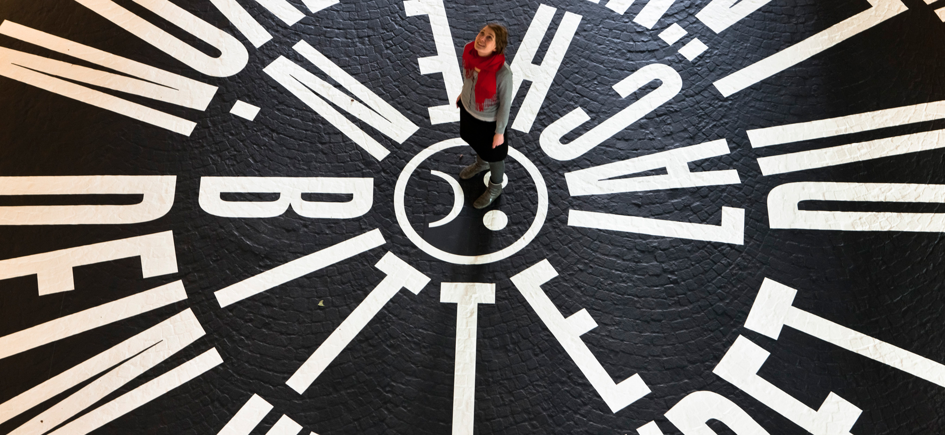 In Barbara Kruger's installation "Circus" developed for the Rotunda of the Schirn in 2010, black and white words and sentences cover all its walls, its floor, and its ceiling, creating an overwhelming impression for the viewer. "I work with pictures and words because they have the ability to determine who we are and who we aren't," says the American conceptual artist. The use of large, ostentatious lettering turns characters into images, makes language and meaning perceivable in a spatial manner.