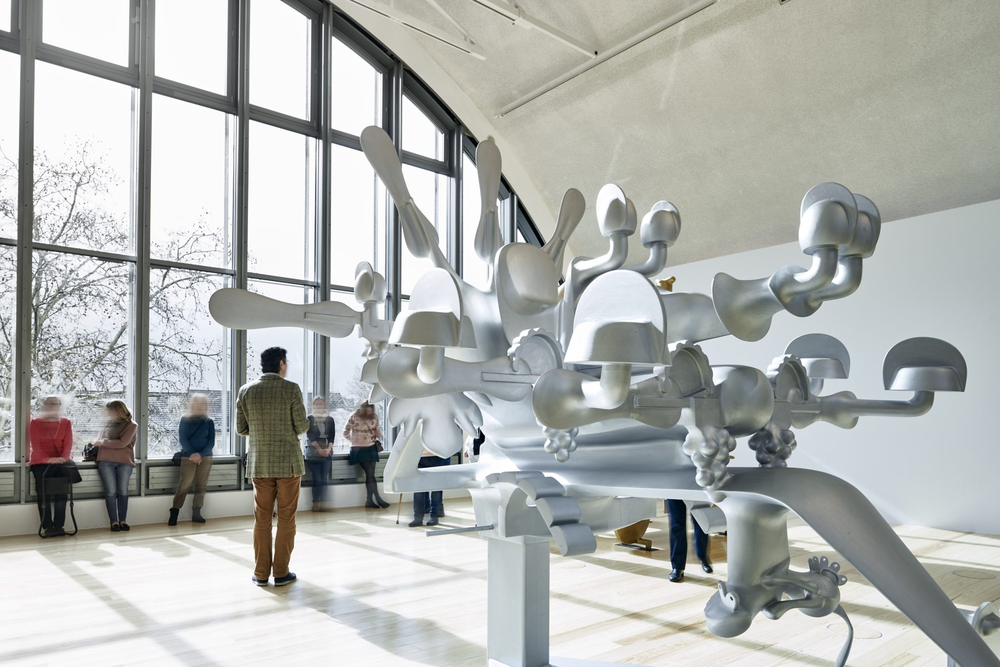 With this incisive exhibition, the SCHIRN is presenting sections from Gironcoli’s later works. The monumental sculptures resemble so many prototypes of a new species, enveloped in shining, seductive surfaces of gold, silver, and copper. Foreign and yet familiar, their organic forms and the set sections in them stem from an everyday culture that is often oriented toward the local: You soon think you can discern a wine barrel, an ear of wheat, or a vine. Then again, Gironcoli stages a strange parade of infants or an imposing ant-like sculpture. His magnificent and unsettling works never fail to impress successive generations of viewers.