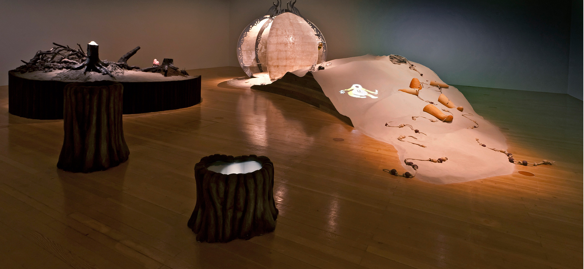 Gabríela Friðriksdóttir approach is characterized by the use of a variety of media: drawings, paintings, photographs, and sculptures figure as prominently as installations, performances, and video films. In her works Friðriksdóttir assembles various cultural, religious, and psychological elements to unfold a unique aesthetic canon of signs, forms, and meanings. This becomes particularly evident in her films, whose surreal scenarios, abandoning all traditional patterns of narrative, confront the viewer with wondrous worlds in which dream images mingle with stories from Norse mythology and references to sexual psychology. For her films, Friðriksdóttir has repeatedly collaborated with the Icelandic pop star Björk. For the Schirn, Gabríela Friðriksdóttir has conceived a room entitled "Crepusculum" (dusk, twilight) in which medieval Icelandic manuscripts are combined with the artist's mysterious system of signs and a new film production to create a mystical landscape.