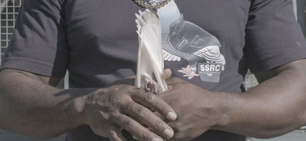 Likewise in “SSRC” the human-animal relationship increasingly comes into focus because in the daily life of Compton the pigeons fulfill a completely different role in addition to the sporting and hedonistic delight in breeding: for the men, who are for the most part Afro-Americans and Latinos, the birds provide a structure and routine for their everyday lives – or as one club member put it: “They keep me out of trouble”. The reason: being a pigeon fancier requires several hours of providing the birds with care, something the club members have to provide day in, day out, and consequently leaves little time for anything else. Yalda Afsah also captures the multifaceted relationship again and again in the close ups of touching: The pigeon fanciers use a dominant, firm grip to hold their pigeons – a grip that seems like a gesture of submission. However, in the course of the film the affection and care in the handling is increasingly revealed, and for their part the pigeons seem to surrender entirely to these emotions. And so you almost have the impression that it is the men who cling to their birds as if to the last straw left to them in everyday life.