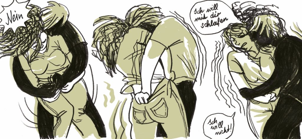 Lust says her work comes close to Bechdel’s way of storytelling,but cites other illustrators as influences:those of Simplicissimus, for example, or the early “Prince Valiant” comics, which were translated into German as “Prinz Eisenherz” and found their way into her father’s newspaper during her childhood.The prince with the striking hairstyle, Donald Duck and the adventures of the collie dog Bessy represented Lust’s first encounters with comics, the continuation of which she awaited longingly, but at the time she was not allowed to buy the colourful publications.Ulli Lust was particularly intrigued by certain scenes:one time when the cowboy has had enough of fighting, he sits down to draw the landscape and the animals – albeit merely as a dramatic ruse:“Sadly his artistic ambitions were presented as merely a relaxation exercise and were never part of the action.”