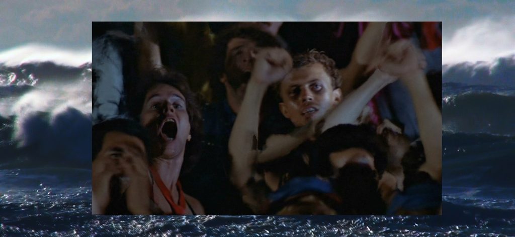 Segments from “making-of” productions of Hollywood blockbusters are shown alongside documentary segments on protest movements against the G20 summit or recordings featuring the Woodstock festival. A conversation between a woman and a man on the movement of crowds, their physical bases, and how these insights may be made productive begins off-screen. According to the conversation, budgeting concerns led big film productions in particular to become among the first to opt to use algorithms in the creation of realistic-looking computer animated depictions of human crowds, as this meant they did not need to rely on extras (the battle scenes of the “Lord of the Rings” trilogy by Peter Jackson comes to mind).