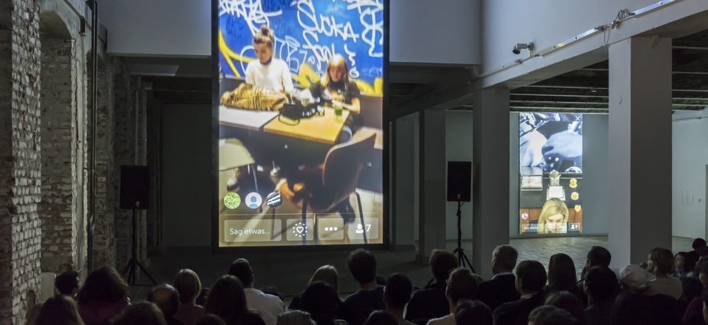 The Periscope app also provided the platform for the continuous live video performance “Free Wifi” by artist Nina Könnemann (born 1971), who lives in Berlin and Hamburg. Staged for the first time in 2016 in Oststation in Vienna, excerpts of the performance are now being shown in SCHIRN’s Double Feature. “Free Wifi” can be described as a film montage comprising texts and live videos recorded in various places all over the world, for example at branches of McDonald’s in Vienna and Berlin, cultural centers in Munich, and restaurants in New York. What unites all those venues is free Wi-Fi, with which all visitors can intervene and comment on the present events.