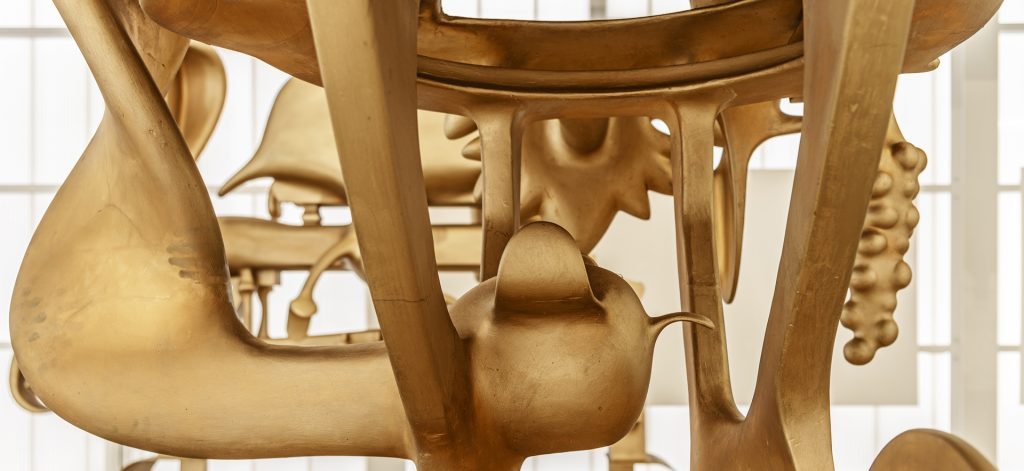 Anyone who has ever encountered the fantastic and monumental sculptures by Austrian eccentric Bruno Gironcoli, will be captivated. At least that’s how it was for me. They are both impressive and vexing and hence seductive. They come in gold, bronze or copper offering smooth, gleaming surfaces. “Broaches” is another word used for them by Gironcoli, who began his artistic career by training as a goldsmith. It’s a somewhat puzzling label that is hard to reconcile with their immense dimensions.