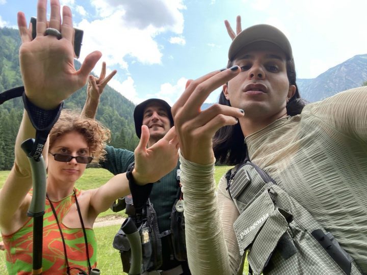 Perfectly equipped with practical and stylish trekking outfits withcountless multifunctional pockets, and of course the obligatory hiking schnapps, the three friends Romy (Julia Riedle), Magda-Gustav (Benjamin Radjaipour), and Karl-Heinz (Thomas Hauser) roam through idyllic mountain landscapes. Clouds of fog dissolve to offer glimpses of the peaks, birds chirp cheerfully, a cowbell tinkles languorously, and ethereal synthesizer sounds complete the picture of a natural landscape at peace with itself, in which people can still ground themselves.
