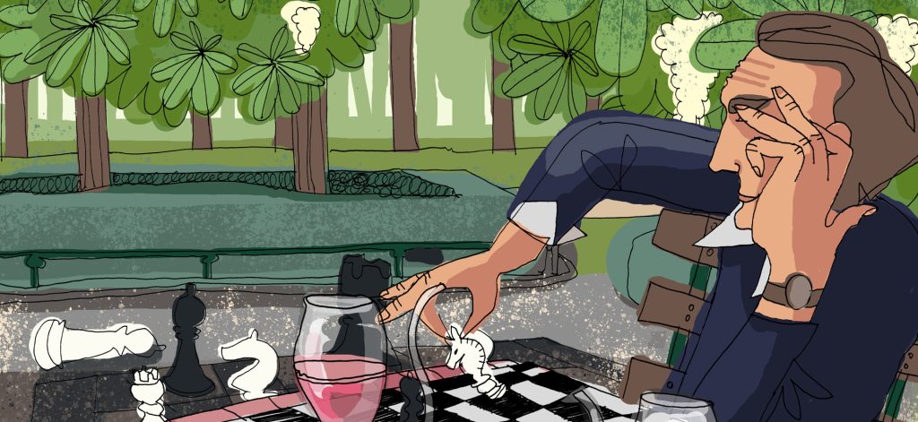At the open-air chess boards on the Lichtentaler Allee in Baden-Baden (Germany).