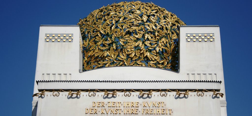 “The time of your art, the art of your freedom”: In shining gold letters the motto of the Viennese Secession adorns the façade of the 1898 exhibition building of this society of artists. In 1897 a group of Viennese artists around Gustav Klimt founded the Secession with the aim of differentiating themselves from the conservative artists’ association of the Künstlerhaus. The founding members also included artists Koloman Moser (1868-1918) and Carl Moll (1861-1945) as well as architects Josef Hoffmann (1870-1956) and Joseph Maria Olbrich (1867-1908). The remarkable Secession building with its cupola of golden leaves was designed by Olbrich.