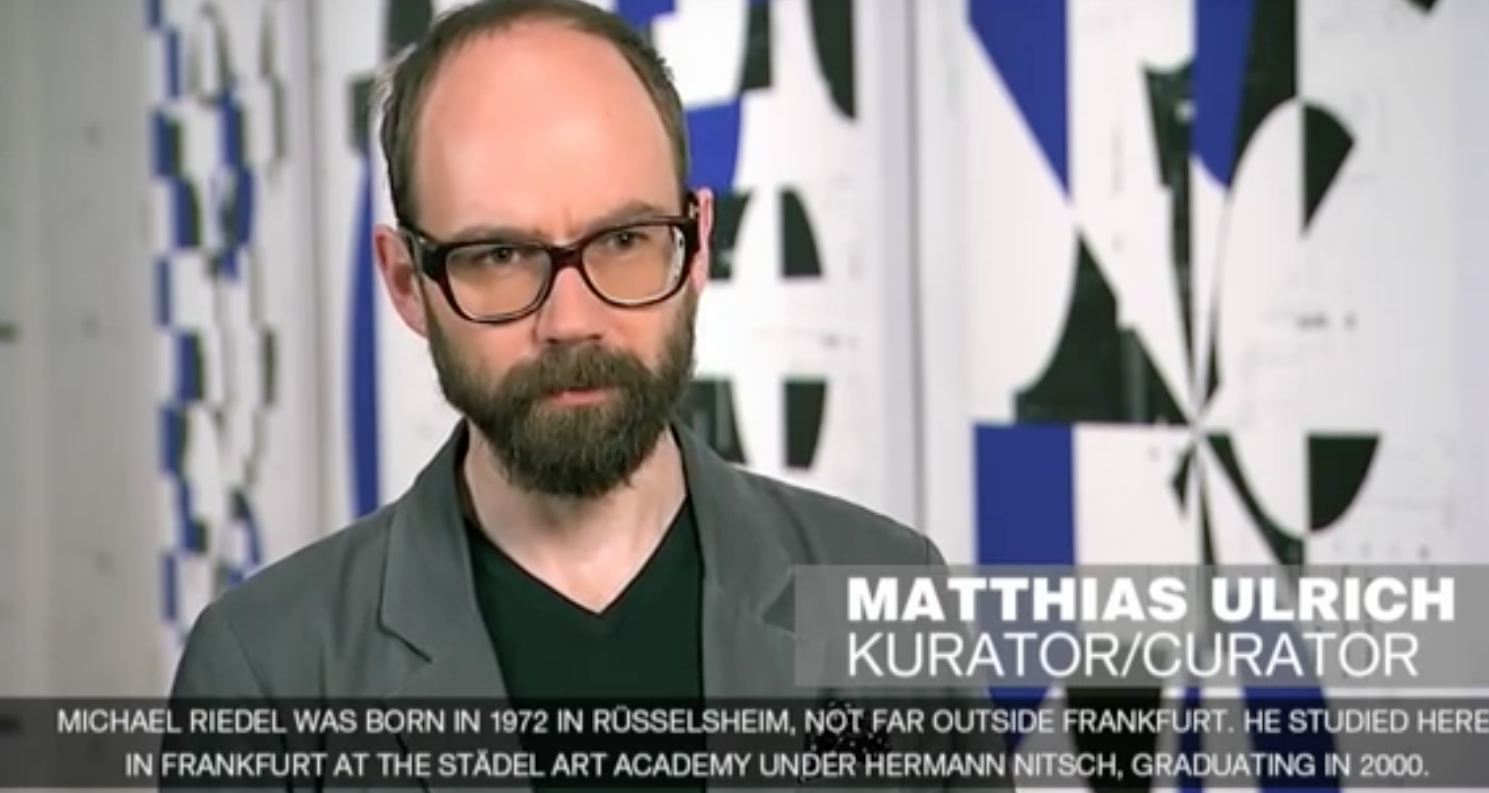 Michael Riedel ist international angesehen für sein Werk, das sich an der Schnittstelle zwischen angewandter Grafik, freier Kunst und Literatur bewegt und sein Künstlersein im Spannungsfeld des Kunstbetriebs widerspiegelt. Ein Schwerpunkt ist dabei die Gestaltung von Einladungen, Postern, Büchern, aber auch Tapeten und anderen Drucksachen, aus denen sich seine signifikanten Bildflächen – die Muster des Kunstsystems – zusammensetzen. 2012 präsentierte die SCHIRN unter dem Titel KUNSTE ZUR TEXT eine erste Retrospektive seines Werks.