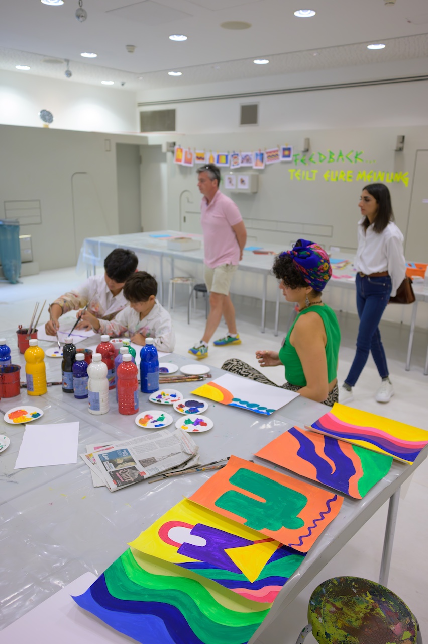 Der Bank of America Family Day beginnt mit einer Reihe von Führungen, die speziell für Familien und Kinder konzipiert sind. Die Führungen dienen als Inspiration und geben den Teilnehmer*innen einen Einblick in die aktuellen Ausstellungen der SCHIRN. Familienführungen bieten spannende Geschichten und kindgerechte Erklärungen, während spezielle Kinderführungen die jungen Besucher*innen auf eine Entdeckungsreise durch die Kunst mitnehmen. Hier können die Kinder Fragen stellen, ihre Eindrücke teilen und erste Ideen für ihre eigenen Kunstwerke sammeln.