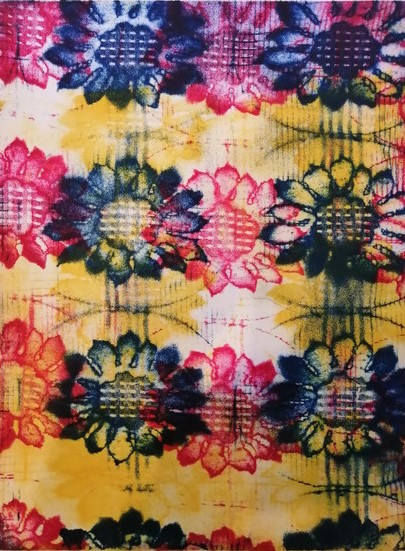 Bleiben wir noch einen Moment bei der Druckgrafik: Sie haben sehr unterschiedliche Arbeiten angefertigt – farbenprächtige Abstraktionen, die Sie an die bunte Kleidung Ihrer Mutter erinnert, aber auch Abdrucke von Ottakringer Bierdosen, Flammruß auf Malpappe…wie entwickeln Sie Ihre Arbeit? Ist das ein Nachdenken, Überlegen im Machen, oder gehen Sie konzeptionell vor?