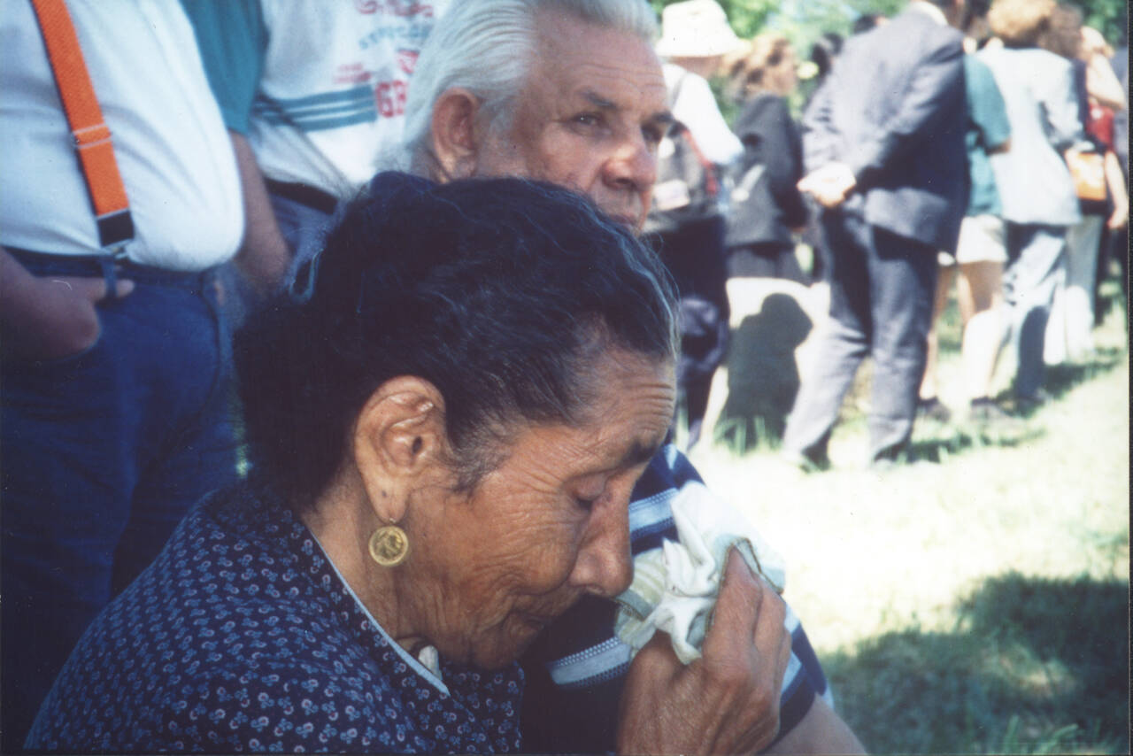 2000 haben Sie die Aktion „Perlen vor die Säue“ im tschechischen Lety durchgeführt. Auf dem Gelände des ehemaligen Konzentrationslagers, in dem vor allem Rom*nja inhaftiert waren, befand sich seit den 1970er-Jahren bis 2018 ein Schweinezuchtbetrieb. Ihre Schwester überließ Ihnen die Perlen ihrer Kette, die Sie dann in einer performativen Aktion vor das Eingangstor warfen. Wurde eine Dokumentation der Aktion nicht später auch in Venedig gezeigt?