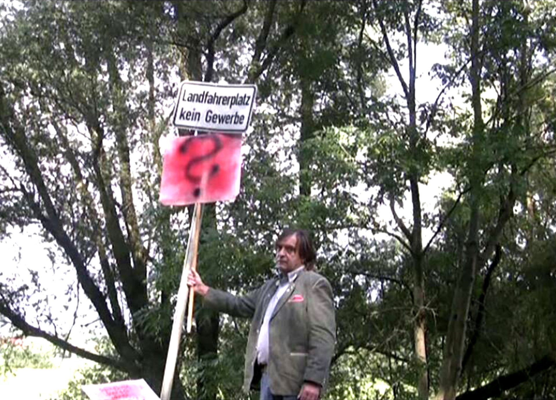 Richtig, mit Hilfe von Freunden, die sich mit der Technik besser auskennen als ich. Weil ich gesehen habe, dass ich allein mit abstrahierter Druckgrafik der Sache nicht gerecht werden kann. Durch diese Aktionen oder auch Videos wie „Landfahrerplatz, kein Gewerbe“ – da konnte ich performativ etwas in Frage stellen. Weil ich gesehen habe: Ohne Provokation bewegt sich nichts in der Gesellschaft.