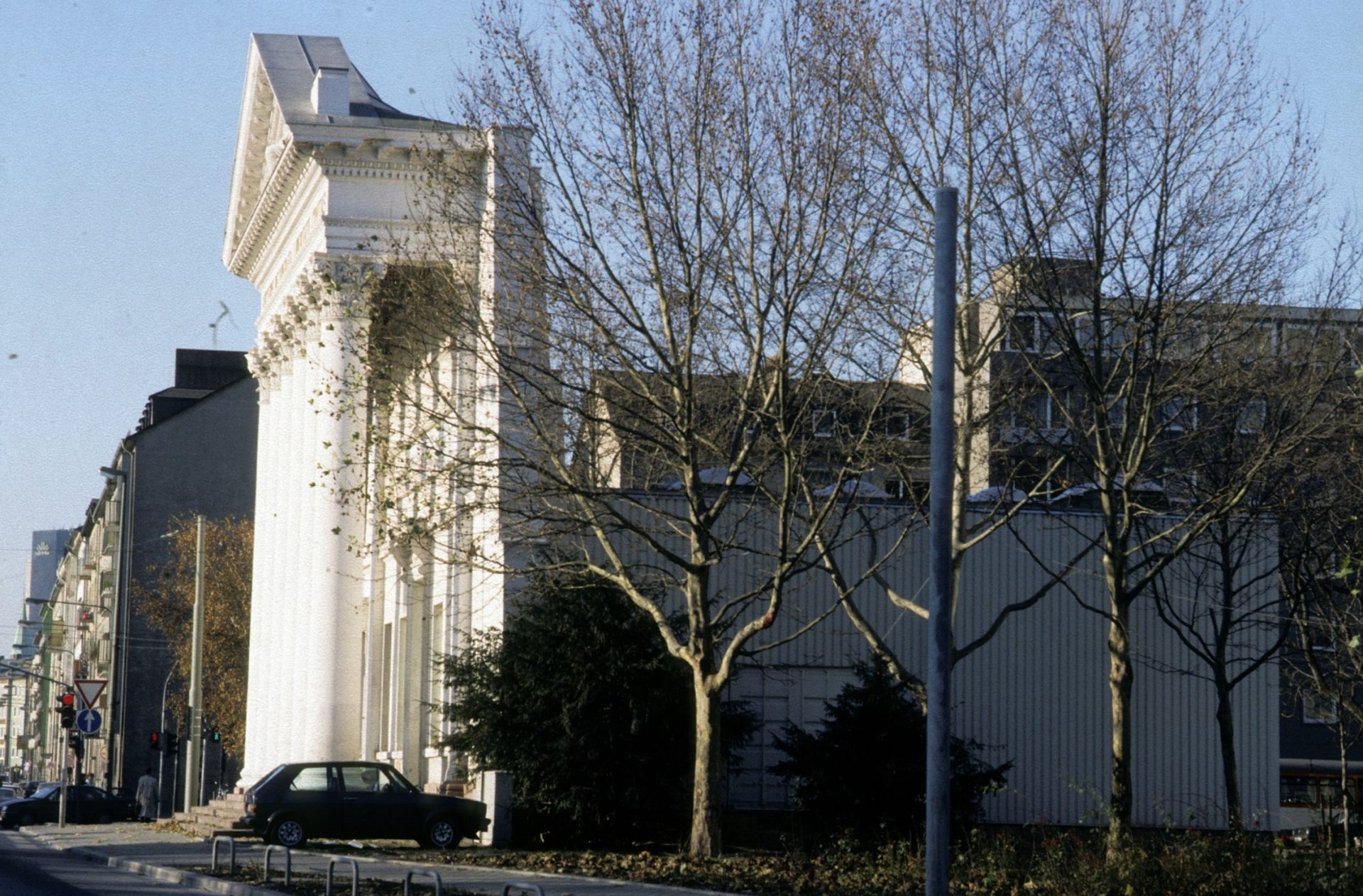 Erzählen Sie uns von einem Ihrer bekanntesten Projekte, das heute nicht mehr im Stadtbild vorhanden ist: Die ursprünglichen Ausstellungshalle Portikus. 1987 am Ort des heutigen Literaturhauses errichtet. Ein „fliegender“ Bau, der ursprünglich nur für zwei Jahre genehmigt worden war und dann immer wieder verlängert wurde. Schließlich hatte er 17 Jahre Bestand. Sie waren damals noch sehr jung, gerade am Anfang ihrer Karriere. Wie kam es dazu?