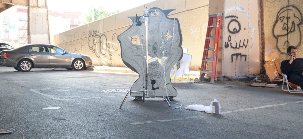 „Under the BQE“ findet am 28. September 2013 in New York statt, „from 5pm to dark“, so steht es in der Einladung zur Ausstellung. Die „guerilla gallery under the Brooklyn Queens Expressway“ wird nach Einbruch der Dunkelheit wieder geschlossen. Unter einer Zugbrücke, zwischen schweren Eisenpfeilern, im Kofferraum parkender Autos, auf dem Asphalt und inmitten der üblichen Ansammlung aus Stadtmüll (Plastiktüten, Glasscherben, Zigarettenstummel) werden Werke von Henke und Karlberg und ihren Zeitgenossen und Freunden gezeigt, darunter Nicolas Ceccaldi, Marlie Mul und Nora Schultz. „Under the BQE“ ist die leicht überspitzte, etwas zynisch formulierte Antwort auf die widersprüchliche Forderung, Kunst solle möglichst politisch, authentisch, jung, dreckig, aber bitte schön auch marktkonform und gut verkäuflich zu sein. „Art looks good when it comes from dirty places“.