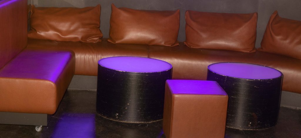 Kaum ein Frankfurter Club hat eine bessere Verkehrsanbindung: Eine Treppe führt direkt von der S-Bahnstation Konstablerwache vor den Eingang des Nachtleben. Im Erdgeschoss befindet sich das Café mit der halbrunden, gut sortierten Bar. Neben Cocktails gehen hier auch tagsüber Kuchen, Suppen und Salate über den Tresen. Über eine Kellertreppe gelangt man nach unten in den Club, der dank seiner überschaubaren Größe, den niedrigen Decken und der fensterlosen Dunkelheit direkt ein Gefühl von Geborgenheit vermittelt. Auf der Tanzfläche stehen große Kartons, in denen neue Stehtische verpackt waren, die vor kurzem angeliefert wurden. Auch die Barhocker sind neu. Die zusätzliche Bestuhlung ist der Corona-Situation geschuldet.