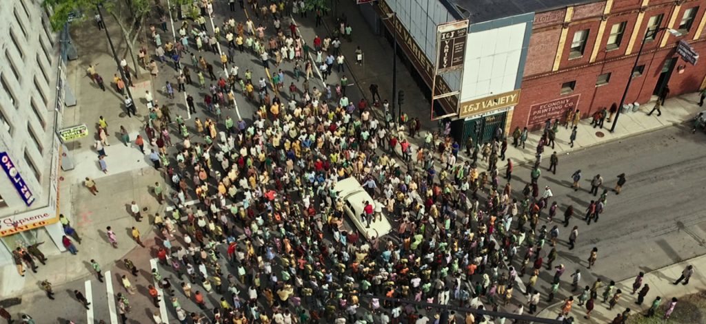Ava DuVernays Biopic über Martin Luther King konzentriert sich auf die Protestmärsche von Selma nach Montgomery. Afroamerikanische Bürger gingen im Frühjahr 1965 in Selma auf die Straße, um für das uneingeschränkte Wahlrecht zu protestieren. Das existierte nach Unterzeichnung des Civil Rights Acts durch Präsident Lyndon B. Johnson zwar auf dem Papier, wurde aber in vielen Landesteilen schleppend bis gar nicht umgesetzt. Den ersten Marsch knüppelte die Polizei hinter der Stadtgrenze auf der Edmund-Pettus-Brücke nieder. Am 9. März 1965 kam es zu einem zweiten Marsch, initiiert von Martin Luther King. DuVernay inszeniert diesen kollektiven Moment als regelrechten Showdown, den King auf Druck von Kongressmitgliedern und zur Deeskalation allerdings vor der Brücke abbricht. Erst im dritten Anlauf schließlich gelingt der Marsch nach Montgomery.