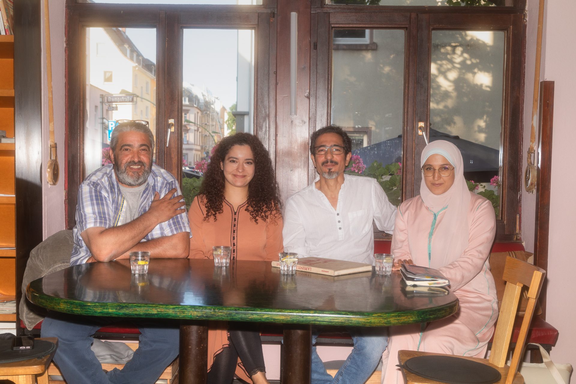 „Nimm zum Beispiel das Wort ‚Regenbogen‘. Auf Tamazight sagen wir ‚Taslit n wanẓar‘ – das heißt ‚Braut des Regens‘. Wenn ich das höre, habe ich eine ganz andere Metapher im Kopf. Die Sprache ist voller solcher Bilder. Das zu teilen, finde ich schön“, sagt Chaouki Kamboua. „Die Sprache macht einfach glücklich“, ergänzt Khadija Larabi. „Ich kann meine Gefühle auf eine ganz besondere Weise ausdrücken und es ist schön, dass jede Sprache einen anderen Blickwinkel ermöglicht.“ Wir sitzen im Frankfurter Stattcafé in Bockenheim. Spiele und Bücher laden zum Verweilen ein. Kunst hängt an den Wänden. Fatima Kamboua und Mustapha Takaddart machen die Runde komplett. Die vier sind Mitglieder der Amazigh Akademie, einem Verein für masirische Sprache und Kultur.