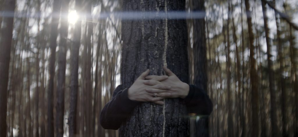 Geruhsam bewegt sich die Kamera im Morgengrauen aus der Vogelperspektive auf eine Baumkrone zu, die kaum noch Blätter trägt. Es erklingen Holzbläser, die pulsierende Staccato-Noten von sich geben, derweil die Kamera langsam den Erdboden erreicht und den Blick auf eine im Baum hängende Leinwand freigibt. Immer näher bewegen wir uns auf diese zu, die in schwarz-weißen Bildern Nahaufnahmen von menschlichen Körperpartien – eine Hand, ein Fuß, ein Hals samt Kette – wiedergibt, während die Holzbläser anschwellen und sich immer mehr zu einem oszillierenden Rhythmus verbinden. Die einsam im Baum hängende Leinwand scheint die Kamera anschließend zu verschlucken und an einen anderen Ort zu katapultieren. Wieder überfliegt die Kamera, dieses Mal bei Tageslicht, eine Waldlandschaft, die sich zwischen Bergen und Tälern entlangzieht. Doch die auf den ersten Blick unberührte Natur ist offenbar keine: irgendwo scheint ein Feuer zu brennen, auf das die Kamera sich langsam zu bewegt, und andernorts werden Bäume gefällt, während eine leichte Smogschicht das helle Sonnenlicht diffus bricht.