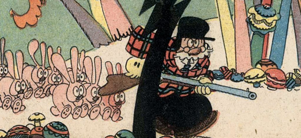 Sterrett mochte sich über diese Kontakte mit Kunststilen wie dem Expressionismus, der Abstraktion oder dem Bauhaus auseinandergesetzt haben. Außerdem war der japanische Farbholzschnitt des 19. Jahrhunderts zu dieser Zeit en vogue. Charakteristisch für diesen sind u.a. die Verwendung von zahlreichen Mustern und eine exaltierte Körpersprache – erinnert uns dies nicht an Paws verrenkten Körper in einem karierten Anzug beim Angeln?