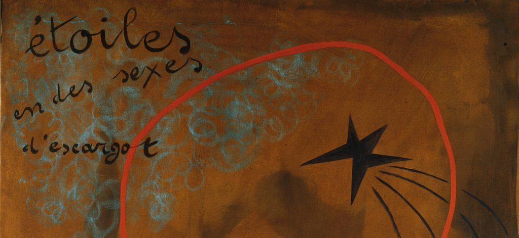 Miró griff auch selbst zum Stift. Als 1936 der Spanische Bürgerkrieg ausbricht, hält sich Miró in Mont-roig in der spanischen Provinz auf. Er flieht nach Paris. Da er zunächst kein Atelier hat, fängt er an, zu schreiben. Jedoch nicht in seiner Muttersprache katalanisch, sondern in dem für ihn fremden Französisch. In den folgenden drei Jahren entsteht so ein poetisches Oeuvre, mitunter kalligraphische Gedichte, Prosagedichte in Form assoziativer Wortketten oder Versgedichte in rhythmischer Form: