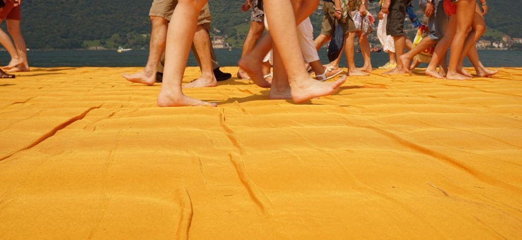 Es sind Werke von eindrücklicher Opulenz, Wirklichkeit gewordene Träume, die das Künstlerehepaar Christo und Jeanne-Claude völlig unabhängig selbst finanziert. Ein Höhepunkt dieses künstlerischen „Think Big“ ist das Projekt „The Floating Piers“, das im Jahr 2016 vor dem malerischen Bergpanorama der italienischen Alpen auf dem Lago d’Iseo realisiert wurde. Endlich, muss man hinzufügen, denn die Idee dazu hatten Christo und Jeanne-Claude bereits 1969. Versuche, das Projekt in Argentinien und in Japan umzusetzen, waren an den mangelnden Genehmigungen gescheitert.