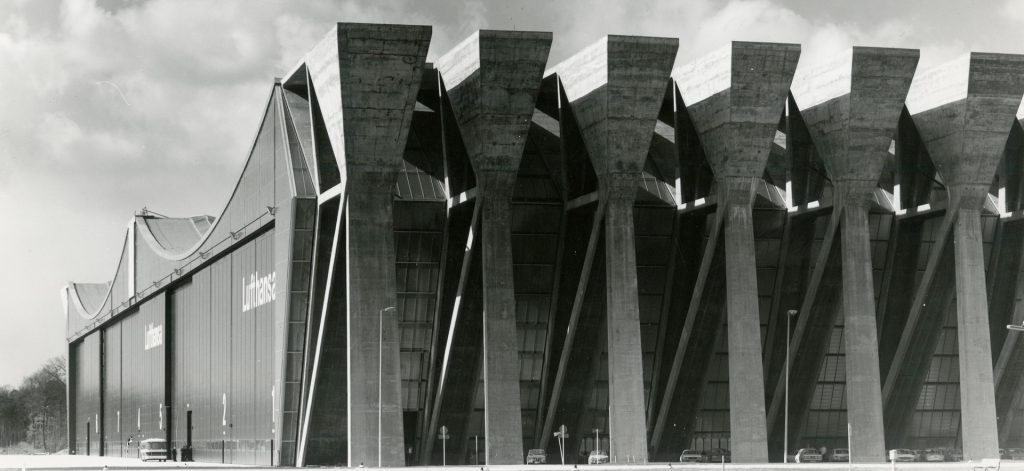 „Bühnen, Banken, Flugzeughallen“ passt nicht nur gut in eine Zeit, in der Charme und Qualitäten der zwischenzeitlich so verschmähten Nachkriegsarchitektur wiederentdeckt werden. Die Schau weist über sich hinaus in die Zukunft, jene Noch-nicht-Zeit, der man in den Bauten Otto Apels und der ABB-Architekten mit „einer Art ruhigem Optimismus“ begegnete: Im Herbst wird das DAM die Ergebnisse seines SOS Brutalismus-Projekts in einer Ausstellung präsentieren, die Beton-Dramaturgie geht also weiter. Und aktuell steht auch die Zukunft der Städtischen Bühnen zur Debatte, zumindest in ihrer ganz konkreten Form: Um das Bauwerk in seinem ursprünglichen Zustand zu renovieren, müsste viel Geld in die Hand genommen werden; ein Neubau käme die Stadt deutlich günstiger. Ob diese Kosten begründet respektive gewollt sind oder nicht, wird eine politische Entscheidung sein. Dass Denkmalschutz und Abrissbirne oft nur einen Hauch voneinander entfernt liegen, auch davon erzählt diese Ausstellung.