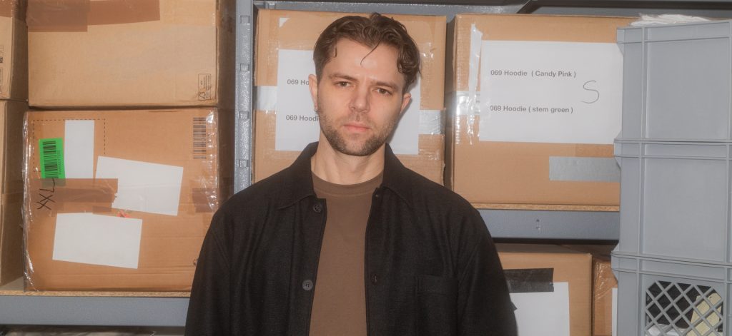 Als Kurtz vor vier Jahren in den Laden auf die Berger Straße eingezogen ist, ließ er einen Teil der Decke herausreißen. Dadurch ist im ersten Stock eine Art Galerie entstanden, von der man auf die Verkaufsfläche blickt. Kurtz und sein Mitarbeiter, der Store-Manager Berndre Becker, sitzen sich dort an Schreibtischen gegenüber. Auf einer Stange hängen sogenannte „Samples“ – also Prototypen von Kleidungsstücken, die noch einmal ausgiebig gemustert werden, bevor sie in Serie gehen. Die Fabriken, aus denen sie kommen, stehen zum Beispiel in der Türkei. An einer Wand lehnt Equipment, wie man es für Produktfotografie braucht. In einer Ecke steht ein Hundekorb. Seine beiden Vierbeiner begleiten Kurtz oft zur Arbeit.