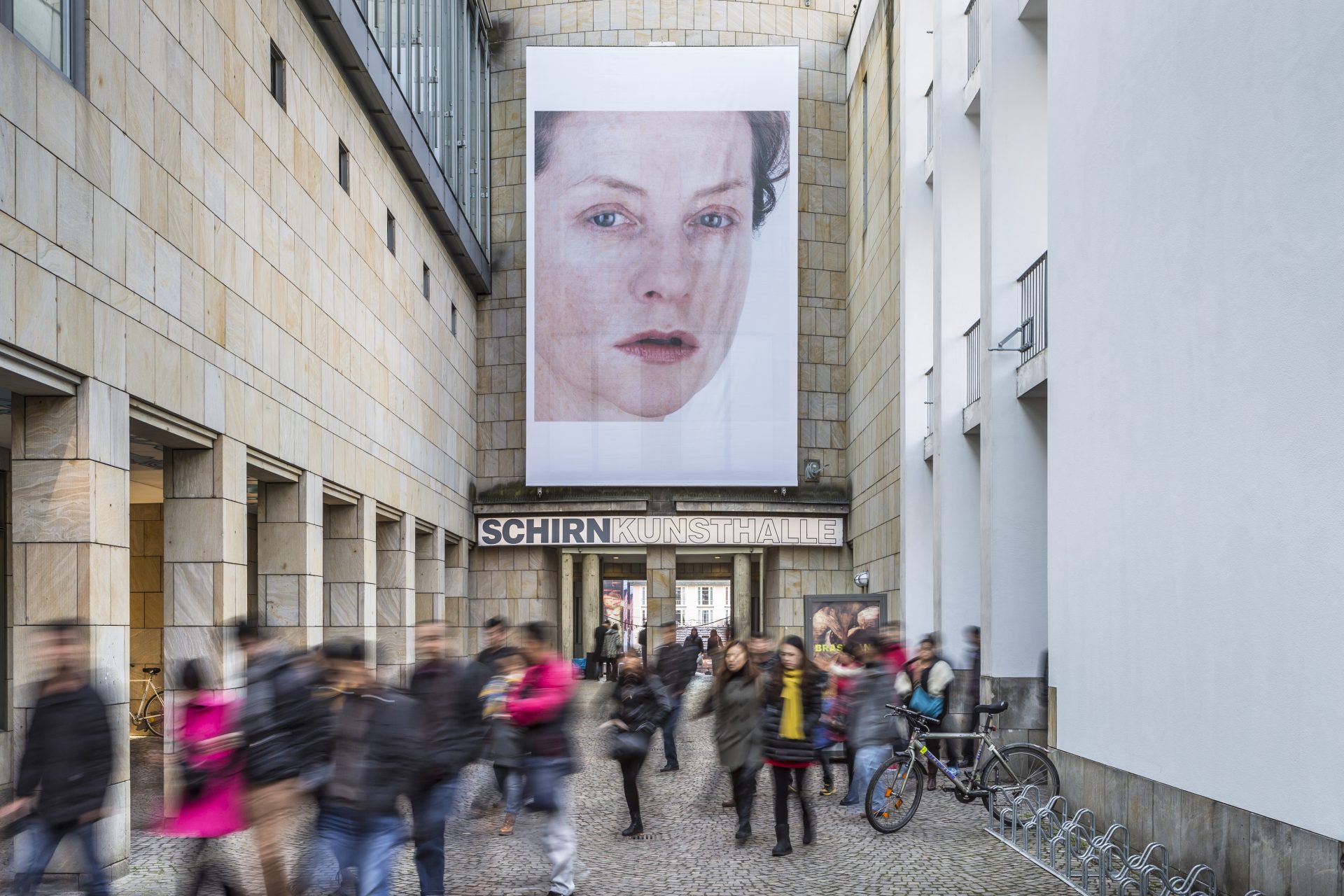 In genau jenes Gesicht schauen aufmerksame Frankfurter zurzeit immer wieder, z.B. beim Warten auf die U-Bahn, Spazierengehen oder eben in der SCHIRN Rotunde: es ist das Gesicht von Isabelle Huppert.