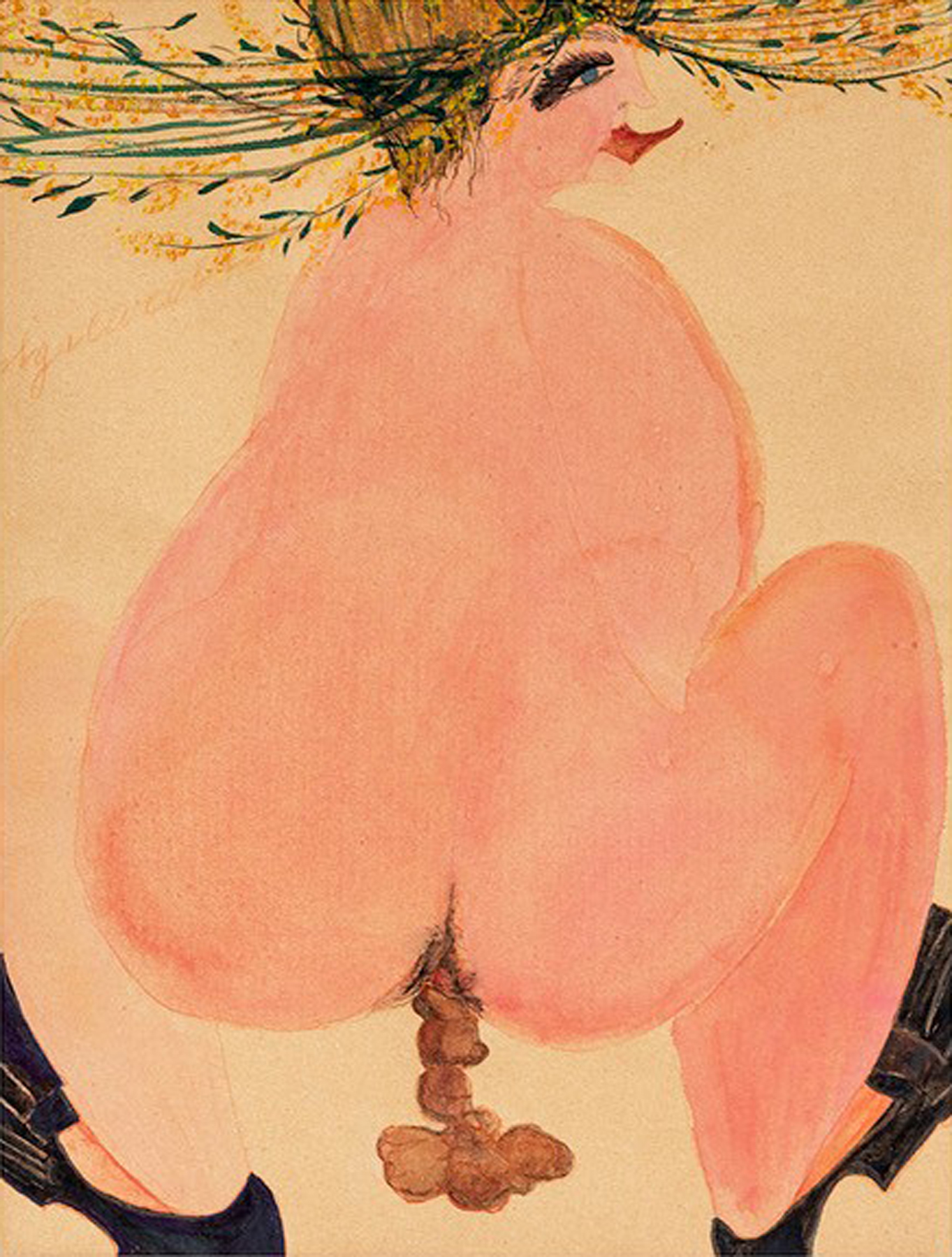 Carol Rama, Marta, 1940, Aquarell, Tempera und Buntstift auf Papier, 23 x 17,5 cm
