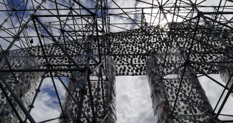 Weitere Arbeiten im Außenraum sind die wohn-Röhren von Hiwa K, „When We Were Exhaling Images“, die vor der documenta Halle aufgebaut sind, die grasbewachsene „Living Pyramid“ von Agnes Denes steht im Nordstadtpark und die interaktive „Mill of Blood“ von Antonio Vega Macotela, die sich in der Karlsaue vor der Orangerie befindet. Ibrahim Mahama hat die Torwache mit Jutesäcken eingekleidet, die Arbeit trägt den Titel „Check Point Sekondi Loco“. 1901-2030 und verweist auf weltweite (postkoloniale) Handelsverflechtungen. „When Elephants Fight, It Is The Frogs That Suffer“ von der Fluxus-Legende Ben Patterson sollte man ebenfalls nicht übersehen bzw. überhhören. Es ist ein Froschchor, eingequakt von Fröschen und professionellen Froschimitatoren, versetzt mit versteckten politischen Botschaften. Zu hören ist diese Fluxus-Symphonie par excellence in der Karlsaue.