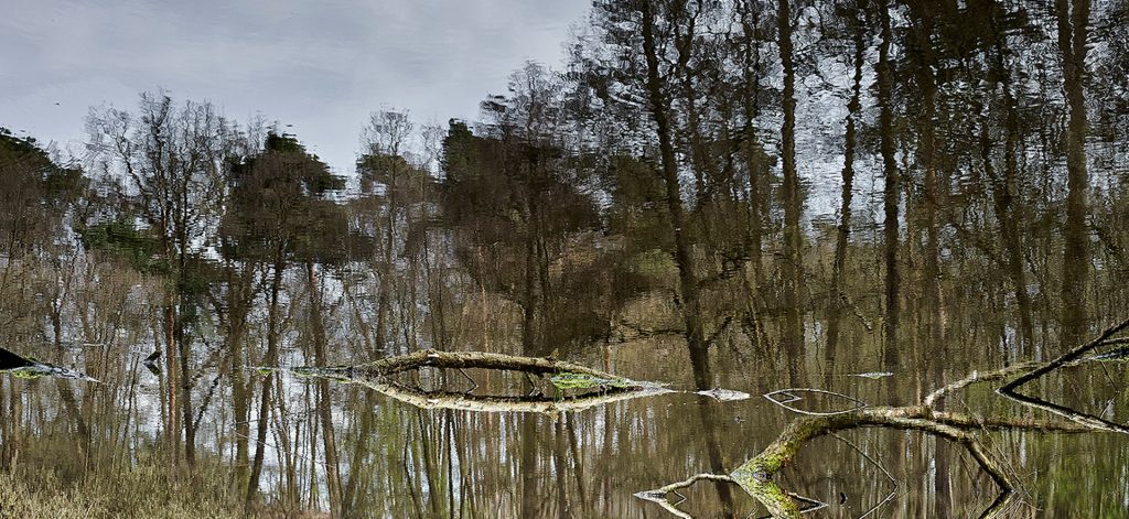 Die Bilder, die in den Waldlandschaften seiner Kindheit entstanden, wirken auf den ersten Blick wie Fotomontagen: Ein Baumstamm scheint schwerelos in der Luft zu schweben. Eine Wolke aus kleinen grĂŒnen BlĂ€ttern wirbelt wie von unsichtbaren KrĂ€ften getrieben durch die baumreiche Gegend. Erst nach einer Weile durchschaut man den Trick, der fĂŒr solch wunderbar surreale Momente sorgt: Eskin hat keines seiner Motive direkt fotografiert. Es handelt sich um Spiegelungen im Wasser. Weil das fertige Bild bei der Nachbearbeitung am Computer um 180 Grad gedreht wurde, fehlt der Die-Welt-Steht-Kopf-Effekt, den man bei den Reflexionen der BĂ€ume zwangslĂ€ufig erwartet.