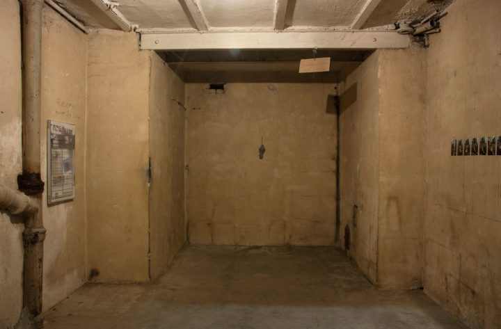 Über die steilen Treppen gelangt man in den Keller und findet dort am Treppenabsatz eine weitere Position. Mit blauen und grünen Fließen bedeckte der Städelstudent Soley Ragnarsdottir das schmale Wandfragment. Es ist die einzige Arbeit in der Ausstellung, die als etwas ‚schönes‘ im Raum paradoxerweise derart befestigt wurde, dass man glaubt die ehemaligen Besitzer hätten es nicht mehr mitnehmen können. Ungewiss bleibt unter welchen Umständen diese Gegenstände zurückgelassen wurden und wer sie einstmals besessen hatte. In Kontrast zu diesen in den Raum eingepassten Fließen fällt der ausgediente Zustand der anderen Objekte umso drastischer auf.