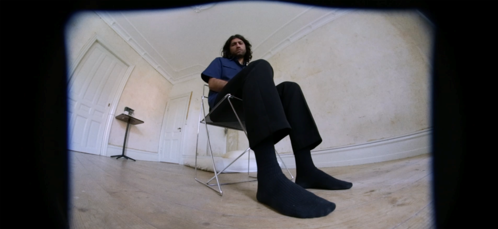 Ein Raum, zwei Menschen; diese abwesend und anwesend, laut und leise: Der Film „Erhöre mich" von Amalie Lorentzen könnte auch mit „Zusammen allein“ betitelt werden. Die 12-minütige Videoarbeit zeigt einen Mann und eine Frau an einem sommerlichen Tag in einer Altbauwohnung. Sie reden miteinander, doch verstehen sie sich nicht. Sie sprechen verschiedene Sprachen: Türkisch und Dänisch. Doch es macht den Anschein, als würden sie beide auf eine eigene Art und Weise miteinander in Kontakt treten wollen. Der Mann ist wie paralysiert, er schaut mit leeren Augen in die Ferne, an der Frau vorbei, und sitzt auf einem Stuhl – manchmal wechselt die Kameralinse in einen Modus der „Überwachung“. Der Eindruck wird dadurch evoziert, dass man den Mann wie durch einen Fernseher sieht und so eine geradezu voyeuristische Perspektive einnimmt. Das Prinzip folgt dem der Scheibe, durch die man nur von einer Seite hindurch schauen kann, da die andere Seite verspiegelt ist.