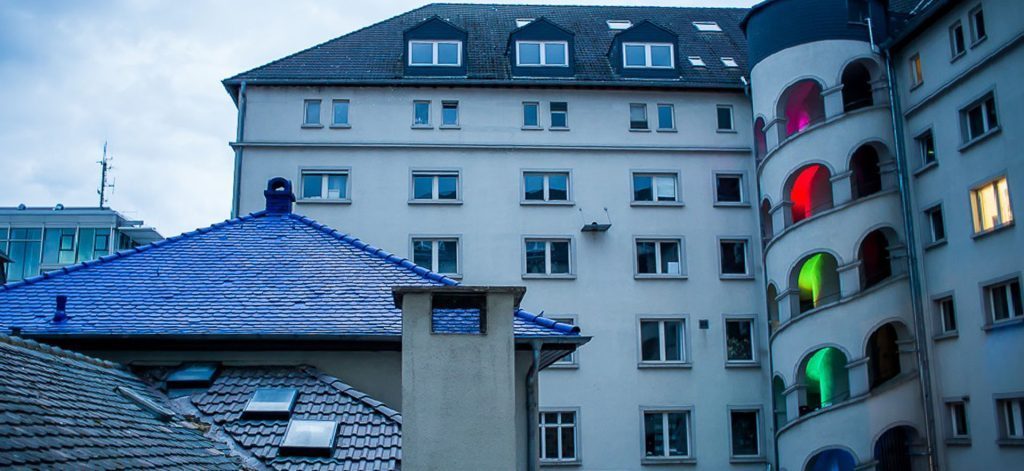 „Die Künstler und Kreativen in unserem Haus haben sich schon lange eine zusätzliche Veranstaltung gewünscht, bei der sie ihre neuesten Werke zeigen, mit Besuchern reden und vielleicht sogar etwas verkaufen können“, sagt Corinna Bimboese. „Seit wir vor zwei Jahren ins Ostend gezogen sind, haben sich immer mal wieder einzelne Stockwerke einem Publikum geöffnet. Jetzt ist erstmals das ganze Haus dran.“
