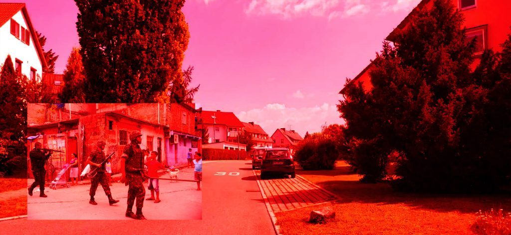Aus der deutschen Vorstadtidylle auf die Straßen der brasilianischen Favelas: das Produkt Gewalt ist eine hochgradig lukrative Handelsware, die unter der Werbekampagne „Sicherheit“ die Straßen Brasiliens heimsucht. In seiner Kunst kommentiert der brasilianische Künstler Igor Vidor die fatalen Auswirkungen des Exportes deutscher Waffen nach Süd- und Nordamerika seit nunmehr als hundert Jahren. Im Jahr 2019 fielen in Brasilien über 6000 Menschen der Polizeigewalt zum Opfer. Allein im Staat Rio wurden über 1800 Menschen getötet. Es handelt sich insbesondere um Menschen Schwarzer, Indigener und marginalisierter Communities, die 70% der ärmsten Bürger*innen Brasiliens ausmachen. Die verwendeten Waffen stammen aus Europa und den USA. Darunter auch aus der deutschen Manufaktur Heckler & Koch in Oberndorf am Neckar. Diese Stadt exportiert seit über hundert Jahren Waffen für den amerikanischen Kontinent.