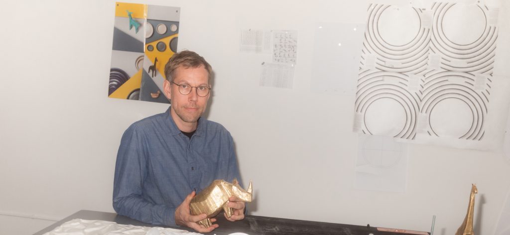 Linke arbeitet für namhafte Auftraggeber und Hersteller. Für das Frankfurter „Lindley Lindenberg Hotel“ und das Restaurant „Seven Swans“ hat er Wandvertäfelungen entworfen. Manufactum hat eine von ihm designte Brotbox im Sortiment. Das Label Pulpo vertreibt dekorative Tierfiguren aus Bronze, die Linke während einem Arbeitsstipendium im Schloss Solitude bei Stuttgart entwickelte. „Nach einer Phase, in der ich ziemlich viel am Computer gearbeitet hatte, wollte ich mich unbedingt wieder mehr mit den Händen beschäftigen“, erinnert er sich. Jeden Morgen gleich nach dem Aufstehen, fertigte Linke ein Tier aus Papier – insgesamt entstanden 24 Exemplare. Vier von ihnen – Nashorn, Reh, Giraffe und Ente wurden später in Bronze gegossen. „Ich fand, das war eine starke Clique.“ Weitere Tiere sind in Planung. Vor kurzem ist ein Gorilla zu der Viererbande gestoßen.