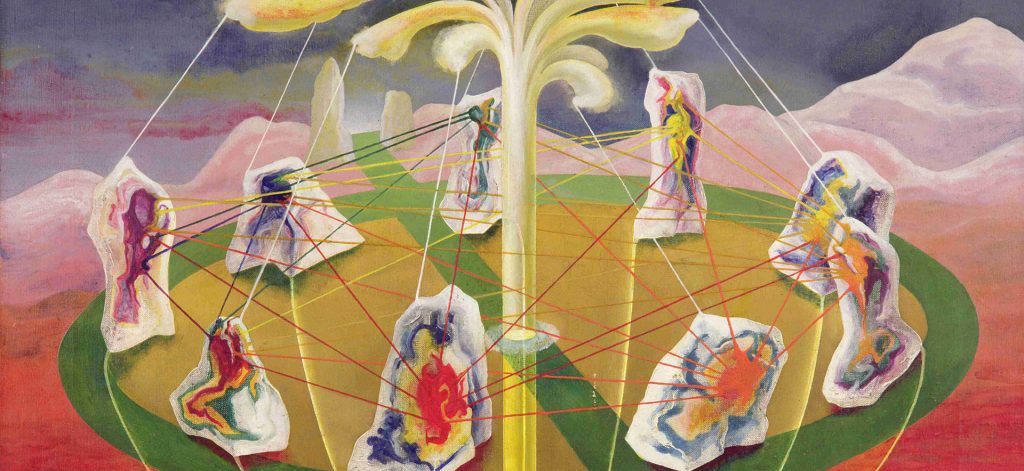 Die Surrealisten waren zwar sehr an Magie interessiert, ließen sich aber vor allem von Sprache und Bildern anregen. Allgemein bestritten sie die Existenz übernatürlicher Kräfte. Einige von ihnen hatten allerdings weniger Vorbehalte. Unter den Künstlerinnen weiß man zum Beispiel, dass Leonora Carrington vor dem Treffen wichtiger Entscheidungen eine Form der Wahrsagung zurate zog, meist Tarotkarten. Und Remedios Varo interessierte sich für Talismane, Hellsehen und Traumsteuerung und experimentierte mit alchemistischen Heiltränken.