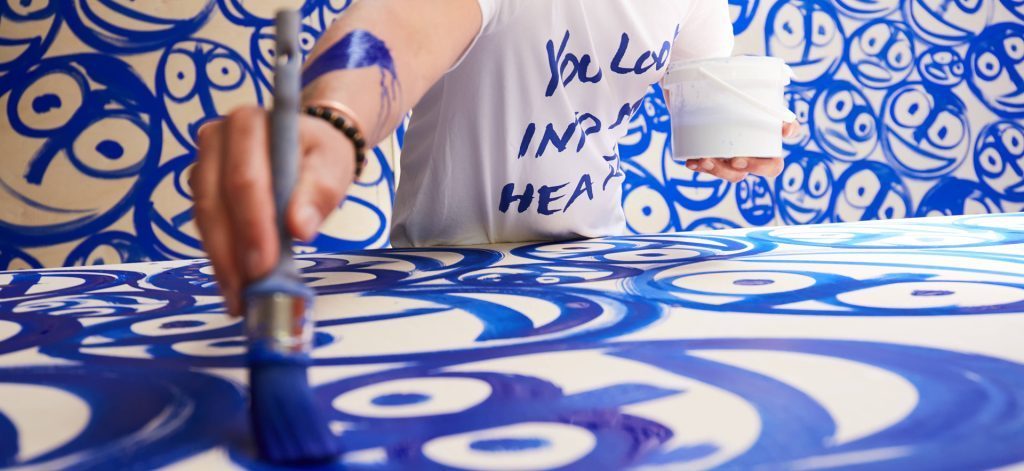 Ich glaube nicht, dass ich ein Genie oder ein ganz besonderer Künstler bin. Ich glaube aber, auch wenn das jetzt etwas spirituell klingt, dass es eine Bewusstheit der Welt gibt, eine Art Cloud. Da kann man manchmal die Erlaubnis bekommen, einige Dinge von dort runterzuholen und verfügbar zu machen. Ich bekomme Ideen und bringe das raus. Ich habe Kunst studiert und mache Kunst, denke ich. Für mich ist Kunst ein Werkzeug, das Herzen öffnet. Aber es gibt auch andere – Yoga zum Beispiel. Jetzt in der Schirn-Rotunde werde ich ja auch da sein, um mit den Besuchern reden. Da können wir gern auch diskutieren: Wie zeigt man überhaupt seine Gefühle?