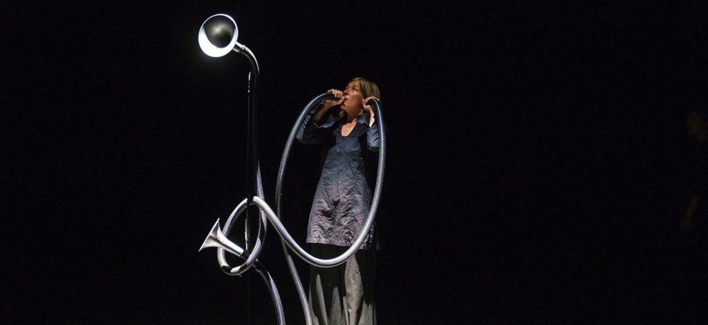 ANNA D‘ERRICO: Anfangspunkt war eine Idee des Komponisten Beat Gysin, der auch zu unserem Team gehört. Er hat vorgeschlagen, Instrumente zu entwickeln, die als Hybride gedacht sind, und dafür Kompositionen zusammenzustellen. Hans van Koolwijk wurde von einem anderen Komponisten, Sergey Khismatov, vorgeschlagen. Hans kommt aus dem Bereich der Sound-Installation und Klangkunst, das ist etwas anderes als das, was wir machen. Es war eine sehr enge Zusammenarbeit mit ihm, um herauszufinden, was zu uns und unserer Praxis passt. Wir fanden es genial, wie er die Instrumente kombiniert: Blas-, Streich- und Schlaginstrumente kommen in einem Instrument zusammen. Das ist der Klangteil. Und dann gibt es den mobilen Teil. Diese Instrumente sind beweglich, das ist uns wichtig. Klang hat Richtungen – Klang bewegt sich. Klangt nimmt Zeit, aber auch Raum ein. Und diesen Raum wollten wir deutlich sichtbar und hörbar machen. Deswegen die Mobilität.